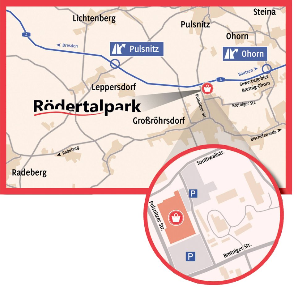 Von Pulsnitz aus fahren Sie die Großröhrsdorfer Straße geradeaus über die Gleise bis zum Gewerbepark.